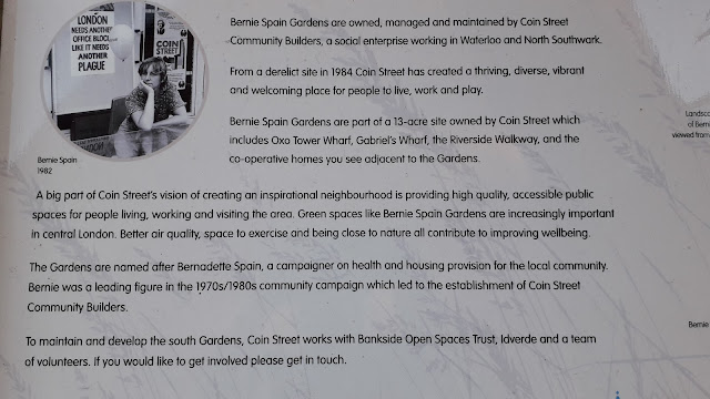 Highlight of the warm evening was to stop at the Bernie Spain gardens which are enroute between my office and London's Waterloo Station. I will let the local community explain the history and future of these gardens.... click the link